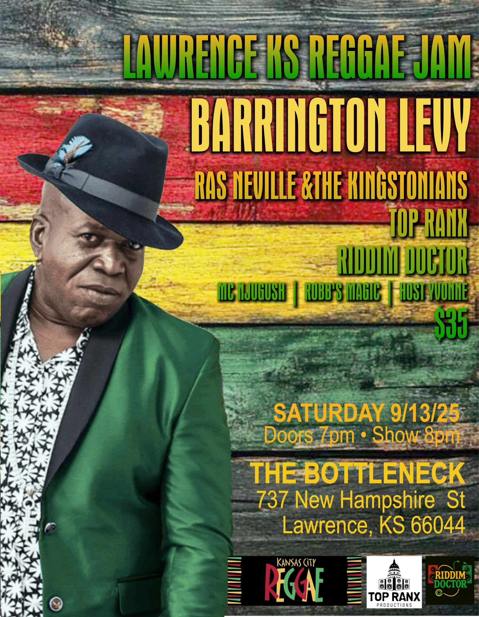 With Ras Neville & The Kingstonians, Top Ranx, Riddim Doctor, MC Njugush, Robb's Magic, Host Yvonne 18+ Doors at 7pm // Show at 8pm Advance Tickets: $35 // Day of Show: $42 Facebook Event