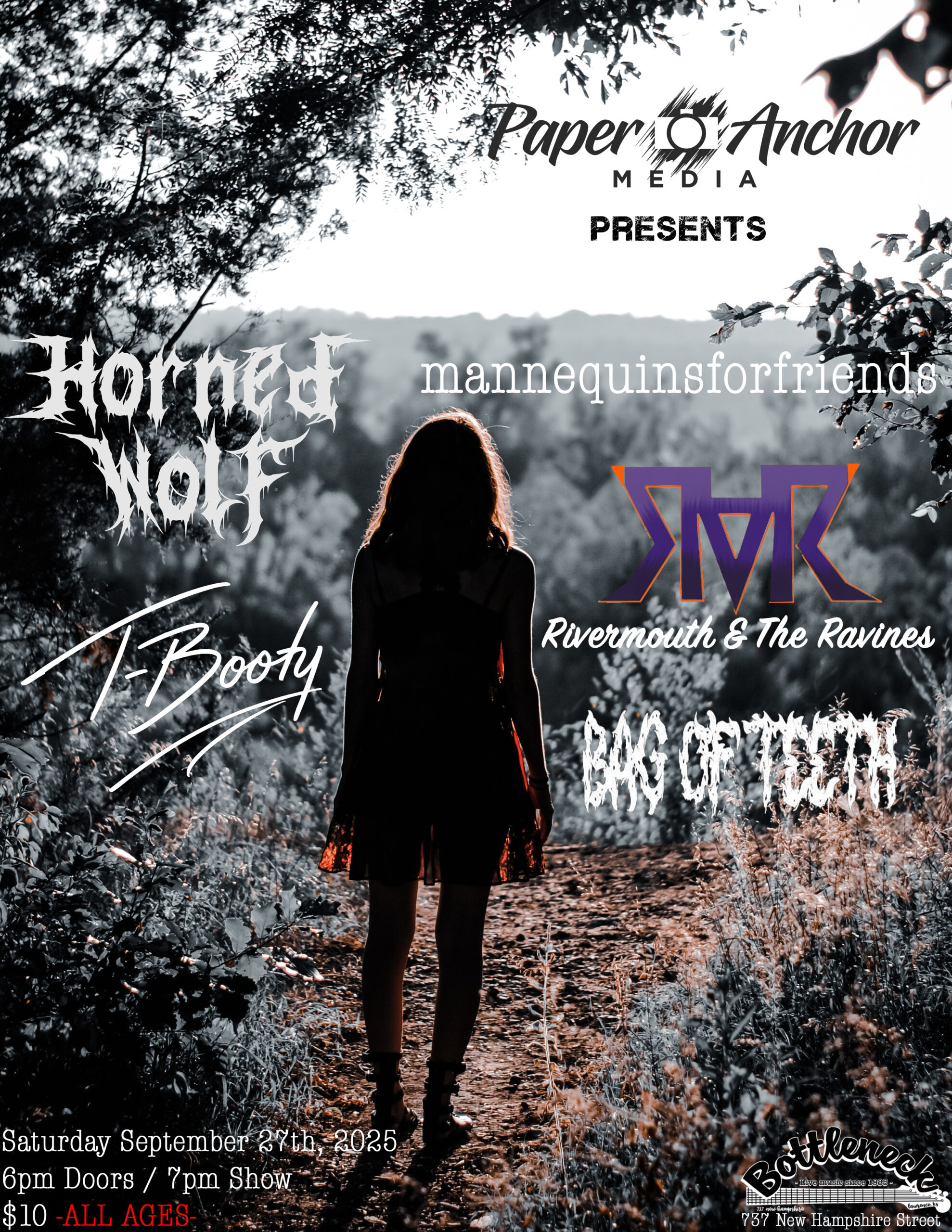 With Horned Wolf, Mannequins For Friends, T-Booty, Rivermouth & The Ravines, and Bag of Teeth All Ages Doors at 6pm // Show at 7pm $10 cover at the door Facebook Event