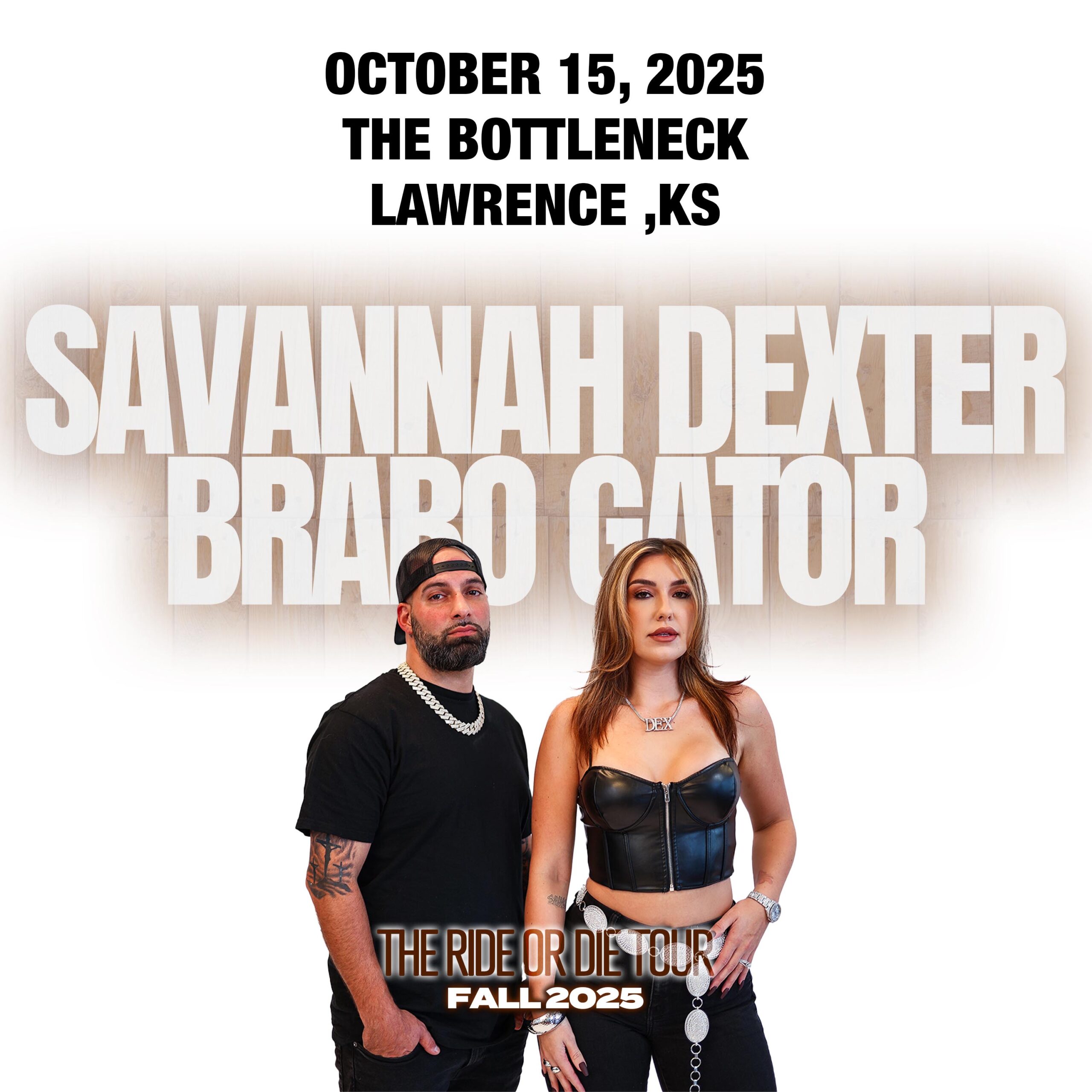 2025-10-15 Savannah Dexter & Brabo Gator – The Ride Or Die Tour Savannah Dexter & Brabo Gator – The Ride Or Die Tour October 15, 2025 Savannah Dexter & Brabo Gator – The Ride Or Die Tour With KRIZZ KALIKO and DENHAM All Ages Doors at 7pm // Show at 8pm Advance Tickets: $30 // Day of Show: $35 // Meet & Greet: $150 Facebook Event
