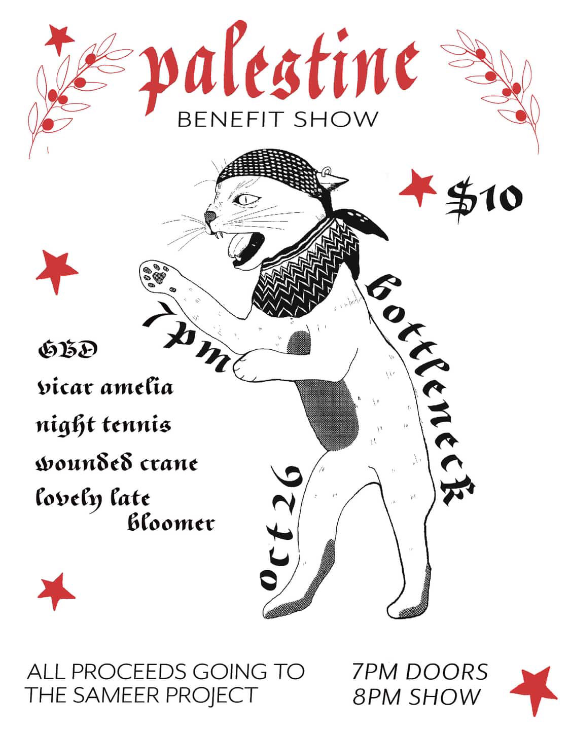 2025-10-26 Palestine Benefit Palestine Benefit October 26, 2025 Palestine Benefit With GBD, Vicar Amelia, Night Tennis, Wounded Crane, and Lovely Late Bloomer All Ages Doors at 7pm // Show at 8pm $10 cover at the door Facebook Event