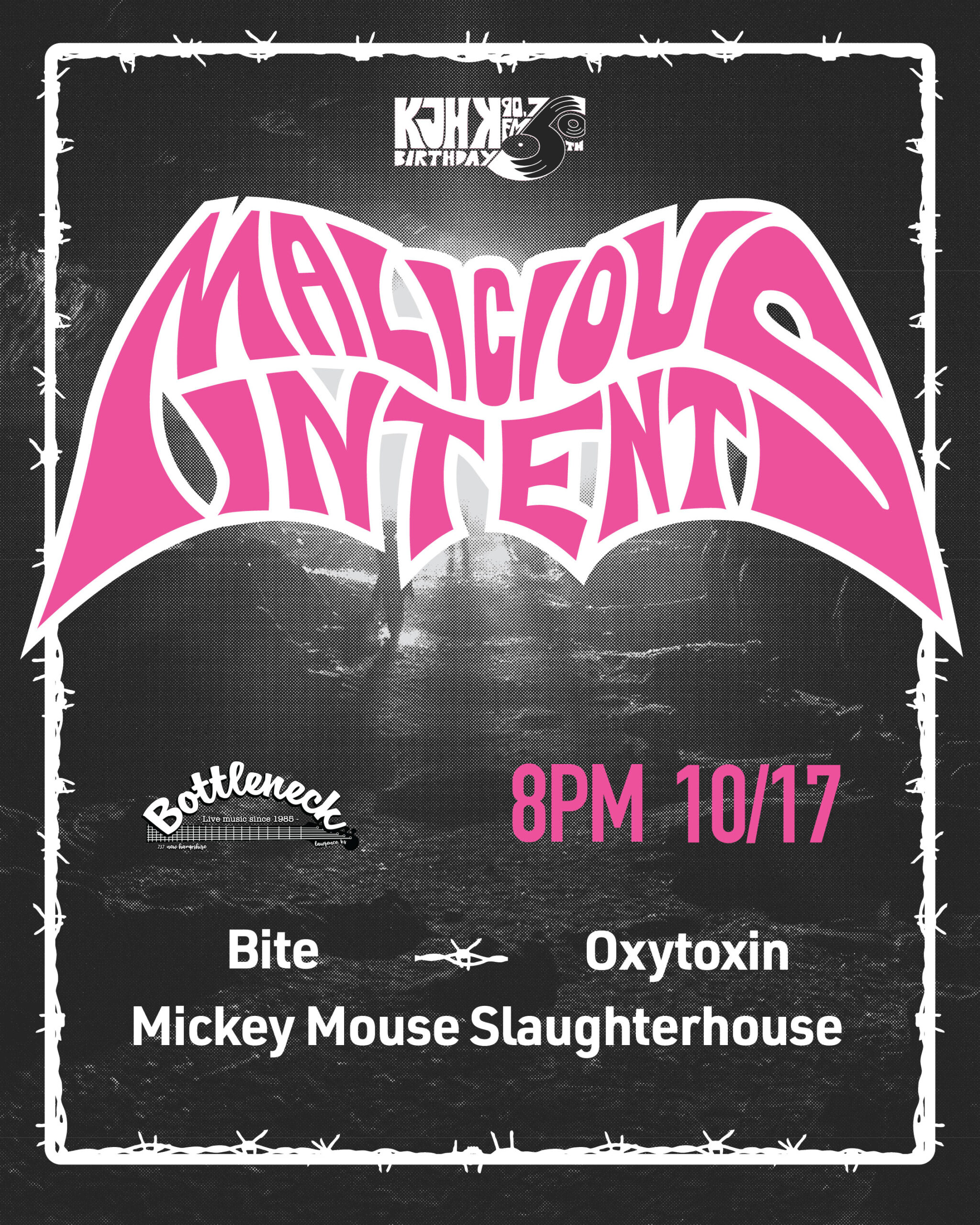 2025-10-17 KJHK 50th Anniversary – Malicious Intent KJHK 50th Anniversary – Malicious Intent October 17, 2025 KJHK 50th Anniversary – Malicious Intent With Bite, Oxytoxin, and Mickey Mouse Slaughterhouse Show at 8pm